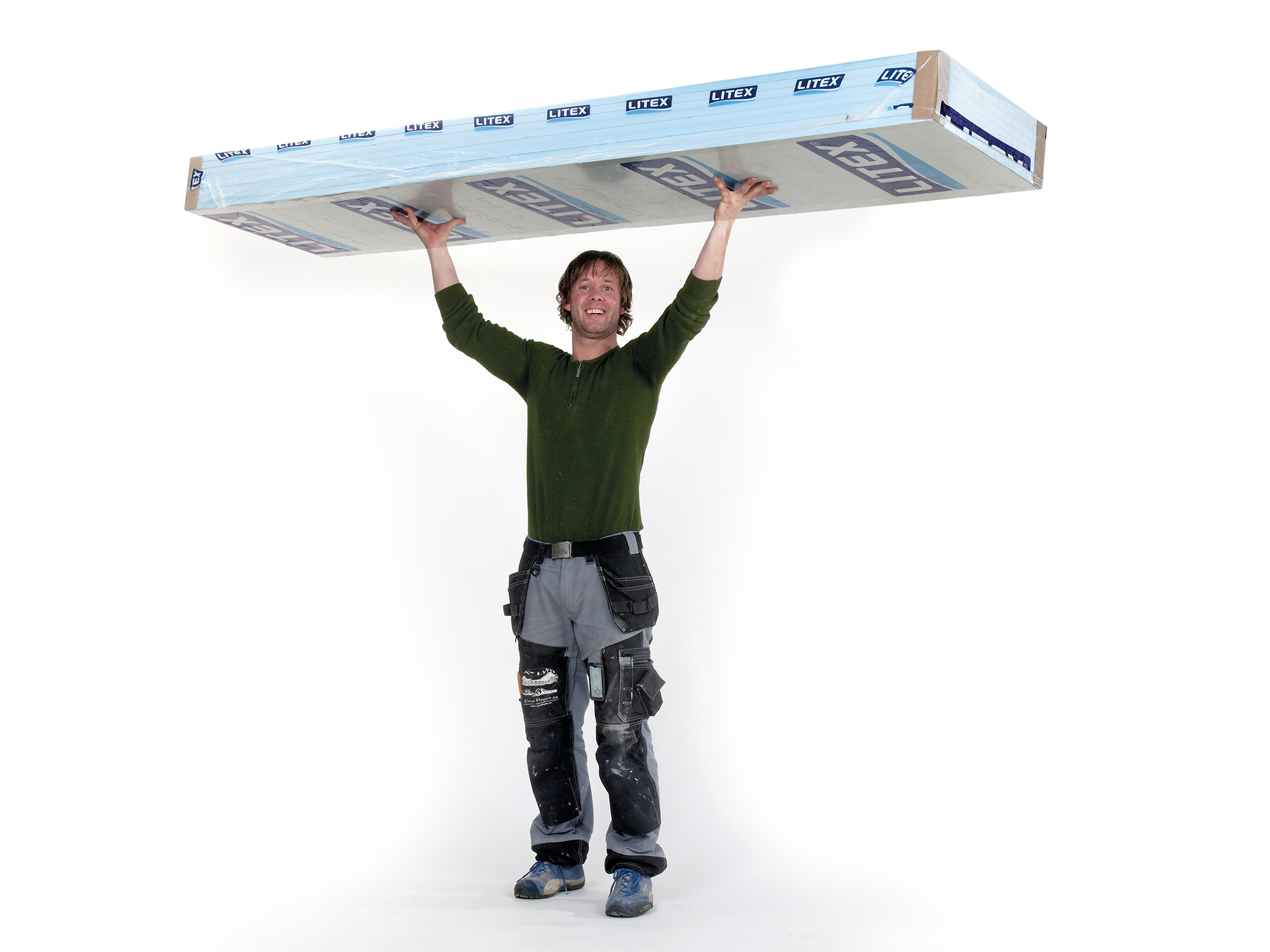 Den største HMS-fordelen til Litex er at membranplatene er lette. For å illustrere fortrinnet: Litex erstatter ofte tyngre løsninger, og på et bad bygget med Litex Membransystemer utgjør våre produkter 50 til 60 kilo. En tilsvarende løsning med gips og smøremembran veier omtrent 450 kilo. Et trygt valg for deg – et godt valg for miljøet!